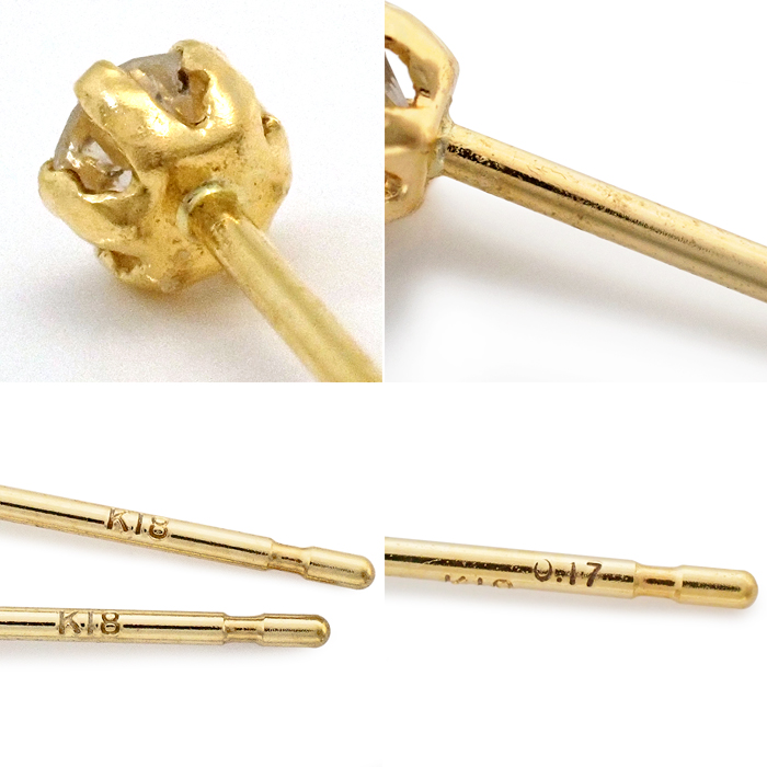 | 詳細 | ダイヤモンド:0.17ct 重量:0.2g スタッドピアス(キャッチ式ピアス) ※ダイヤモンドには、10倍のルーペで確認できる天然特有のインクルージョンがあります。 ※新品の商品ですが、K18には僅かな小傷・くすみがあります。 |