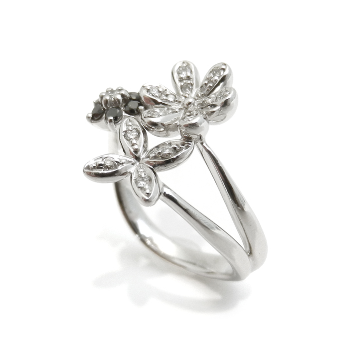 K18WG ブラックダイヤモンド 指輪 フラワーモチーフ 13号 新品仕上げ済 ホワイトゴールド