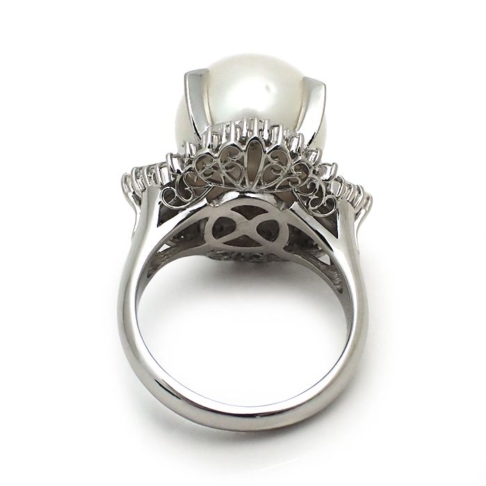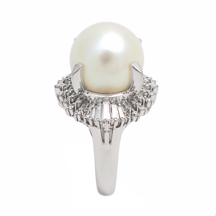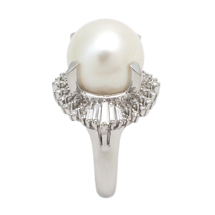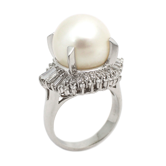 Pt900 パール ダイヤモンド 指輪 9.5号 真珠 シルバーカラー