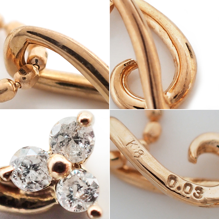 | 詳細 | 0.03ct 1.5g トップ取外し可能 ※ダイヤモンドには、10倍のルーペで確認できる天然特有のインクルージョンがあります。 ※K18PGにごく僅かなくすみや小傷があります。 ※画像の色の見え方は、お使いのモニターやディスプレイによって異なります。 |