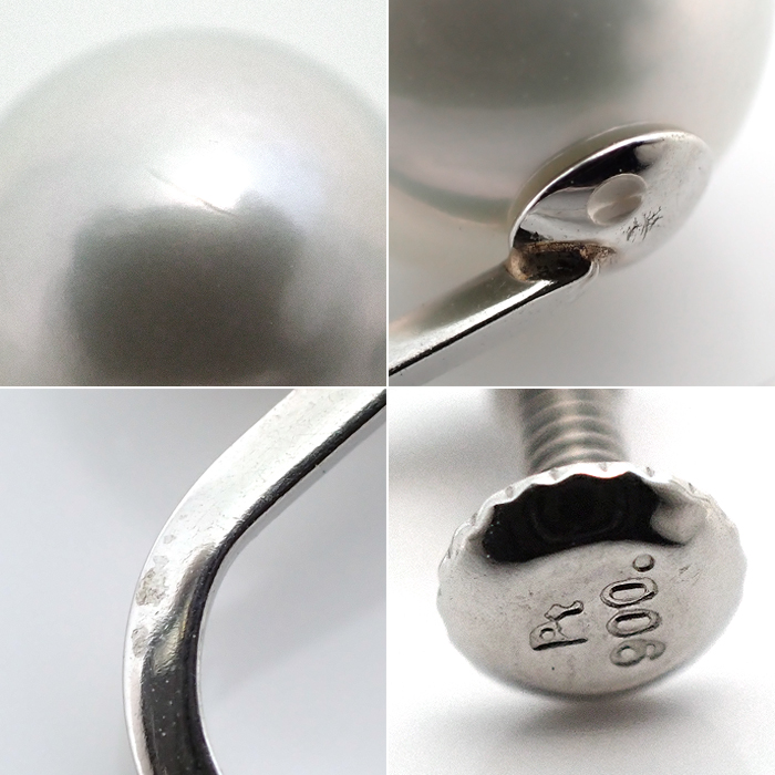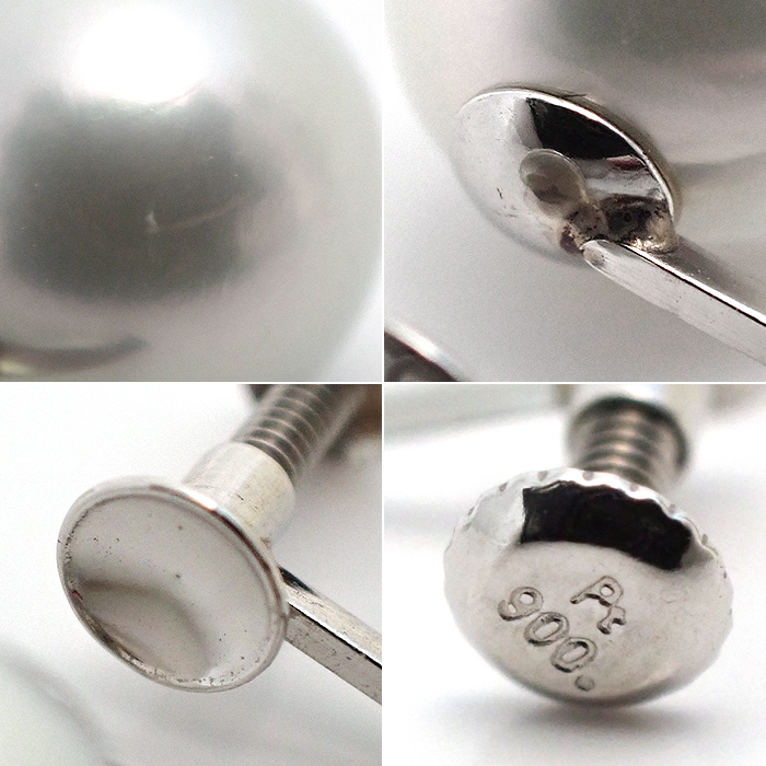 Pt900 パール イヤリング 一粒 真珠 シルバーカラー