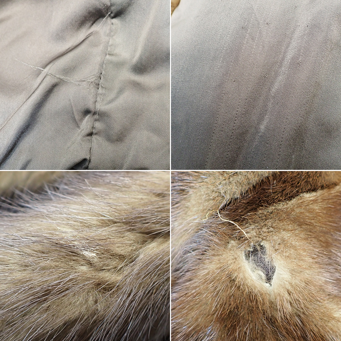 | 状態 | 内側に引っ掻き傷、首後ろ部分に穴あき、内ポケットにカビ、また、数か所僅かにほつれている箇所がございます。 ※店頭展示品のため、わずかな汚れ、小傷等付く場合がございます。 |