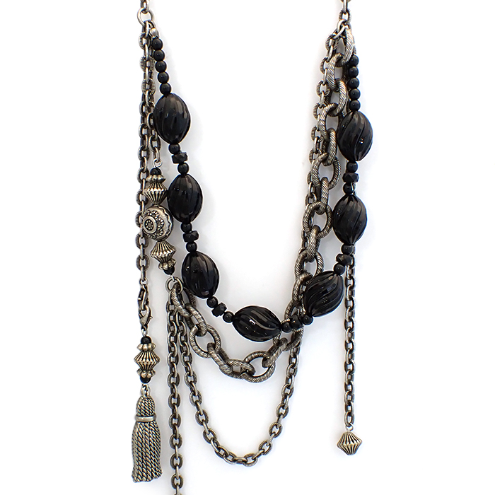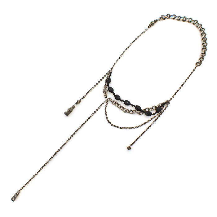 メタル ロングネックレス チェーン アシンメトリー シルバーカラー