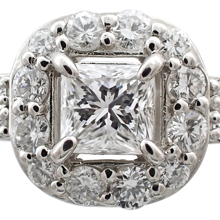 Pt950 ダイヤモンド 指輪 7号 プリンセスカット リング 鑑定書付き シルバーカラー