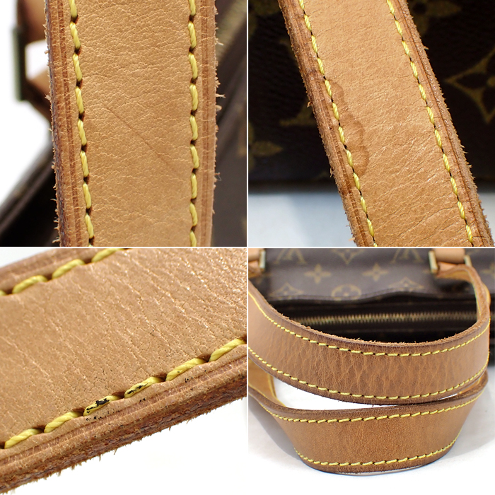 | 状態 | 全体的に型崩れがあり、キャンバスにはスレ・汚れ、ヌメ革には汚れ・シミ・焼け・傷・シワ等があります。 また、金具にはくすみ・小傷・メッキ剥がれ等があります。 ※店頭展示品のため、小傷等付く場合がございます。 |