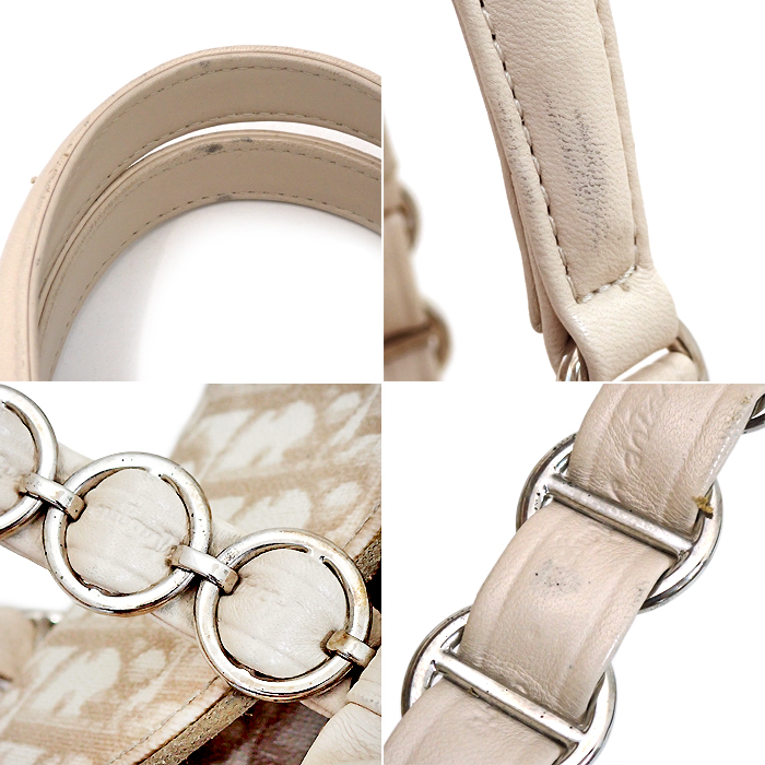 | 状態 | 内側・外側に僅かな汚れや変色があり、全体的にコバ剥がれ・コバ割れがあります。 また、レザー部分には汚れやスレ、金具には小傷・くすみ・変色・メッキ剥げ等があります。 |