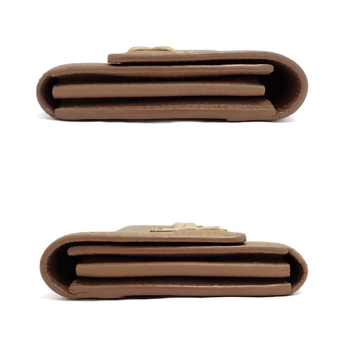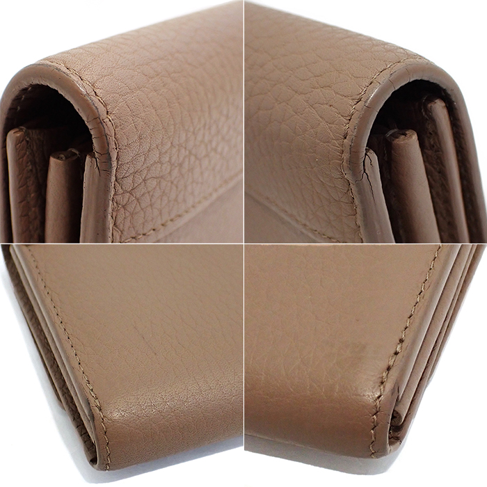 | 状態 | 金具には小傷や変色・くすみ・レザーには、傷や押し型・型崩れ・コバ割れなどがありますが、小銭入れは未使用で綺麗です。スナップボタンは緩くなっています。 ※付属の保存袋には折シワなどがあります。 ※店頭展示品の為、多少の擦れ・小傷・汚れなどがつく場合があります。 |