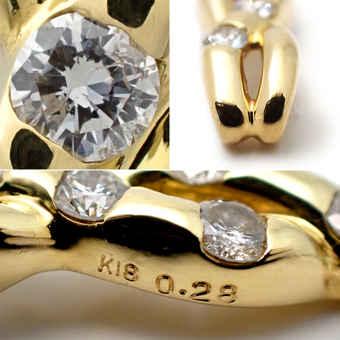 | 詳細 | ダイヤモンド:0.28ct 重量:1.6g ※宝石には10倍のルーペで確認できる天然特有のインクルージョンがあります。 ※K18には肉眼では分からない程度の僅かな小傷などがあります。 ※画像の色の見え方は、お使いのモニターやディスプレイによって異なります。 |