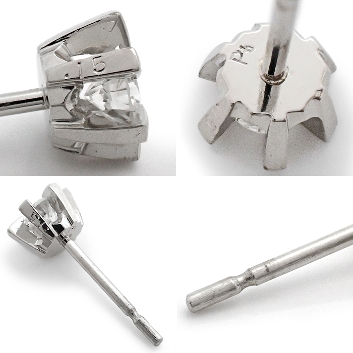 | 詳細 | ダイヤモンド:0.15ct×2 重量:0.7g スタッドピアス(キャッチ式ピアス) ※ダイヤモンドには10倍のルーペで確認できる天然特有のインクルージョンがあります。 ※Pt850に僅かな小傷やくすみがあります。 |