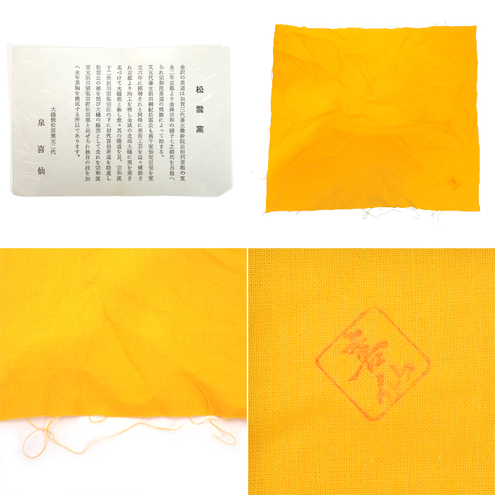 | 状態 | 製造時からと思われる、凹凸や貫入(ひび模様)などがあります。 ※布にシワや糸のほつれ、共箱にはヤケ・小傷・僅かな蓋の浮きなどがございます。 |