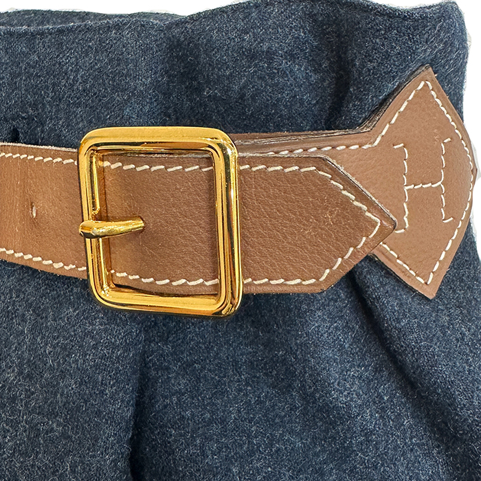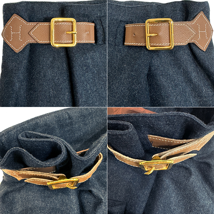 | 状態 | ・表地は多少の毛羽立ち等ございますが、比較的綺麗な状態です。 ・裏地には全体的に大小のシミ汚れ等がございます。 ・バックル、ベルトレザー部分には多少の小傷がございます。 |