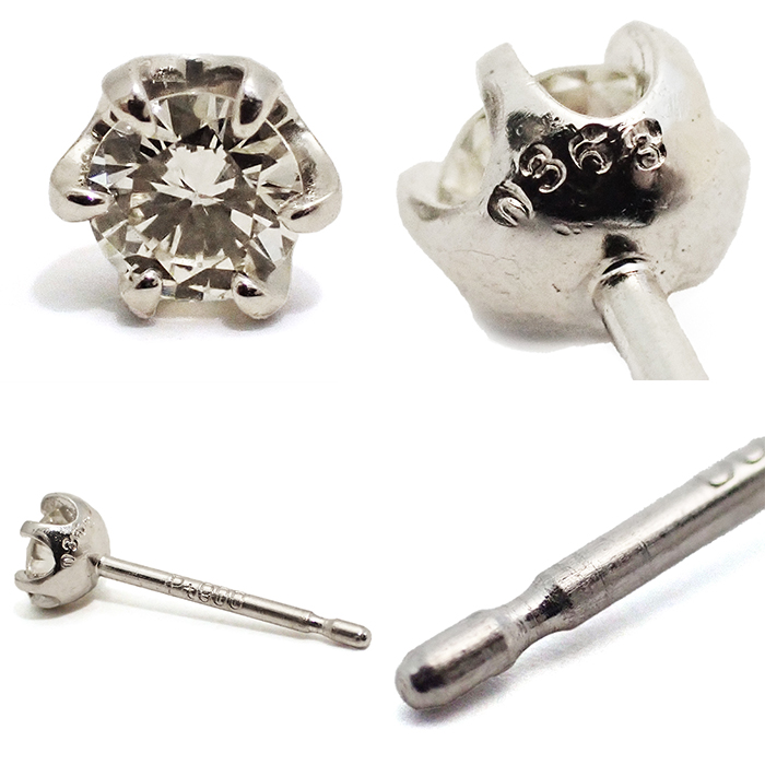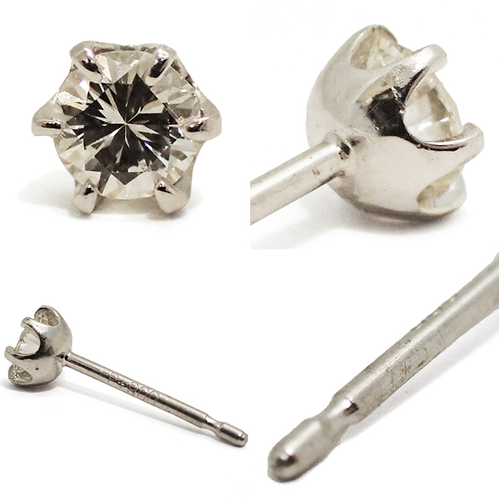 | 詳細 | ダイヤモンド:0.353ct(両方合わせて) 重量:0.8g スタッドピアス(キャッチ式ピアス) ※ダイヤモンドには10倍のルーペで確認できる天然特有のごく僅かなインクルージョンがあります。 ※Pt900には小傷やくすみ等があります。 |