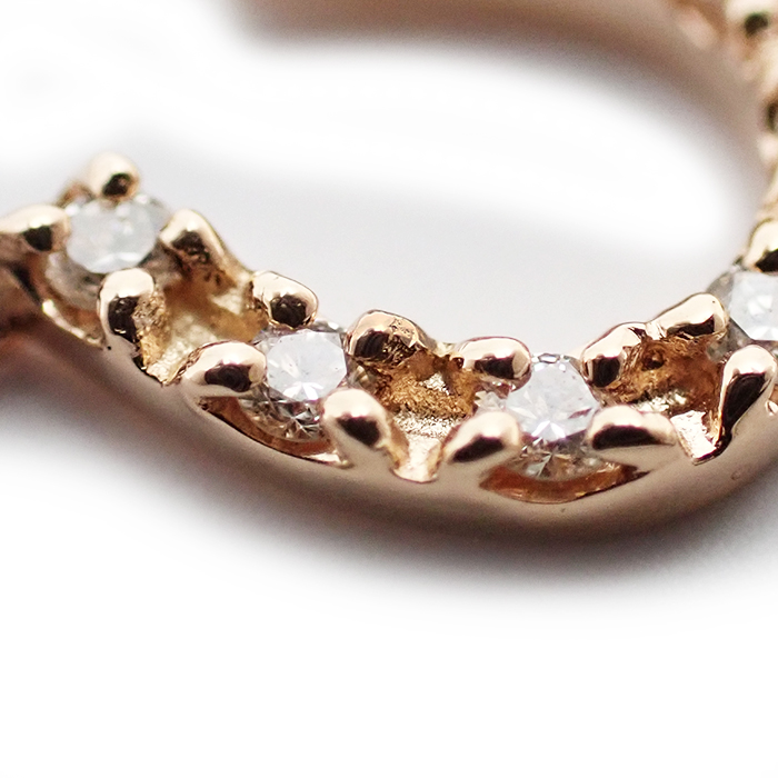 | 詳細 | ダイヤモンド:0.05ct 重量:0.7g トップ:取外し不可 ※ダイヤモンドには、10倍のルーペで確認できる天然特有のインクルージョンがあります。 ※K10PGに小傷やくすみなどがあります。 |