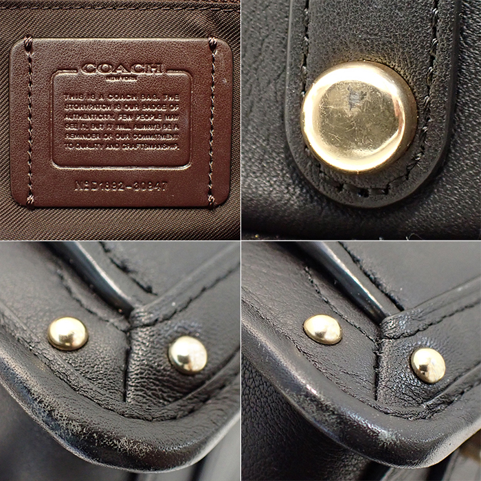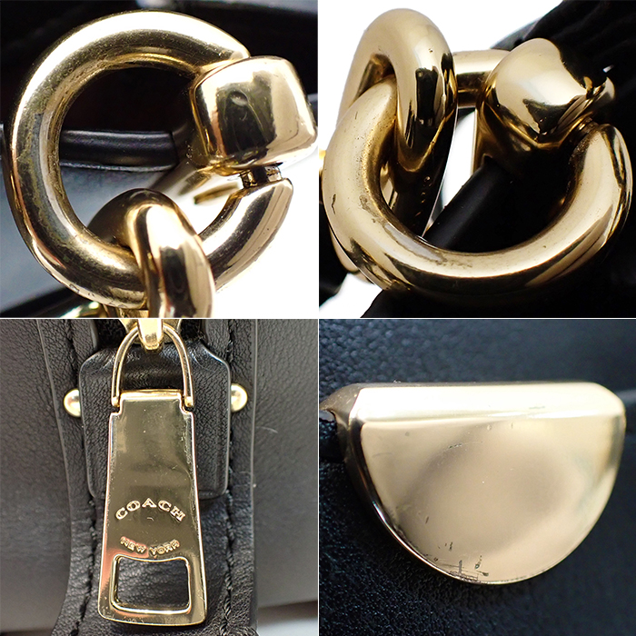 | 詳細 | カラー:ブラック 金具:ゴールド ファスナー開閉式 外側:マグネット式ポケット2 内側:オープンポケット1/ファスナーポケット1 ショルダー:約100cm〜109cm(長さ調節可) ※レザーには使用に伴うスレや傷、金具にはメッキ剥がれ・小傷・汚れ・擦れなどがあります。 ※画像の色の見え方は、お使いのモニターやディスプレイによって異なります。 |