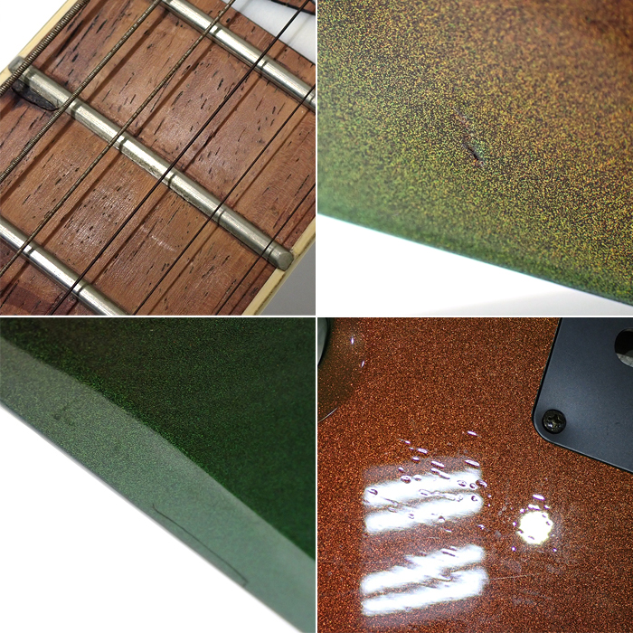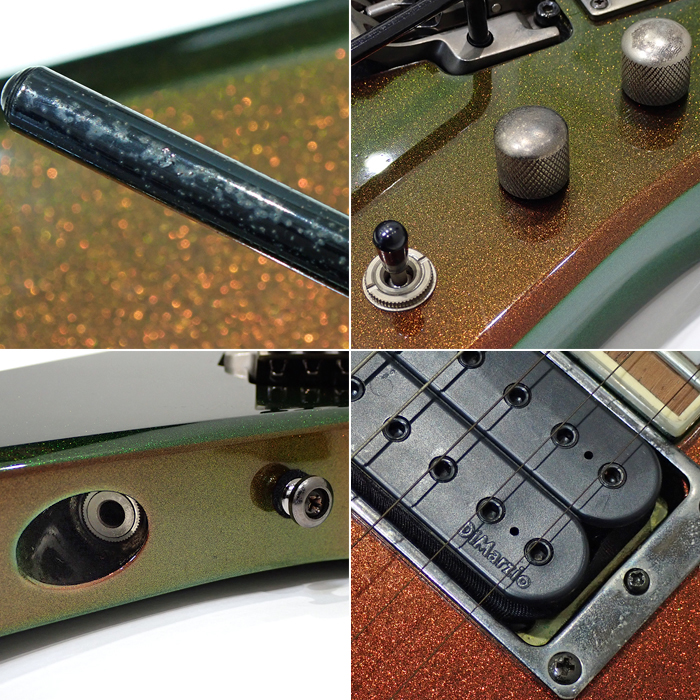 | コメント | 個性的な変形ボディは見る角度によって色が変化します。 Dimarizo製ピックアップが搭載してあります。 |