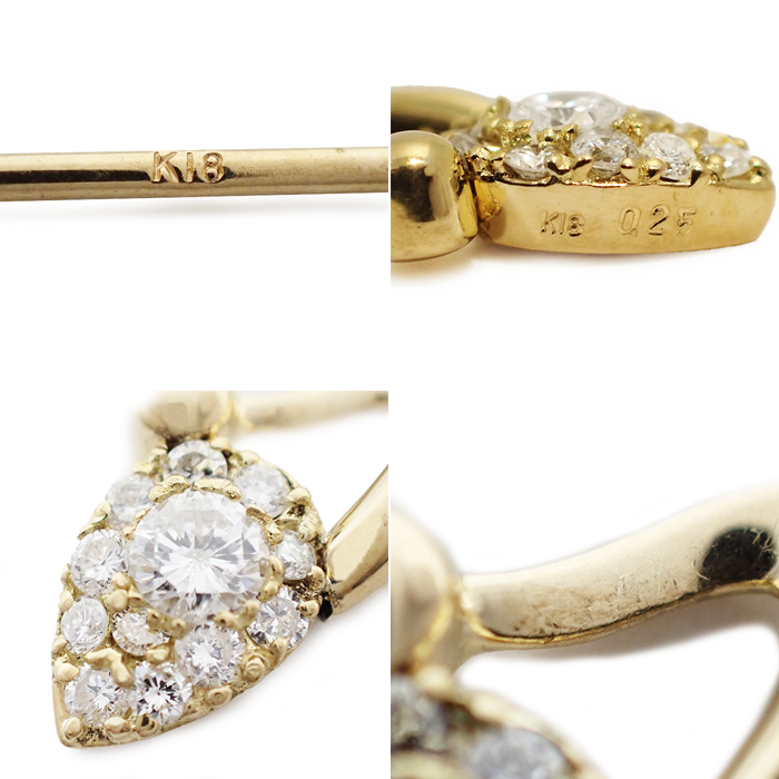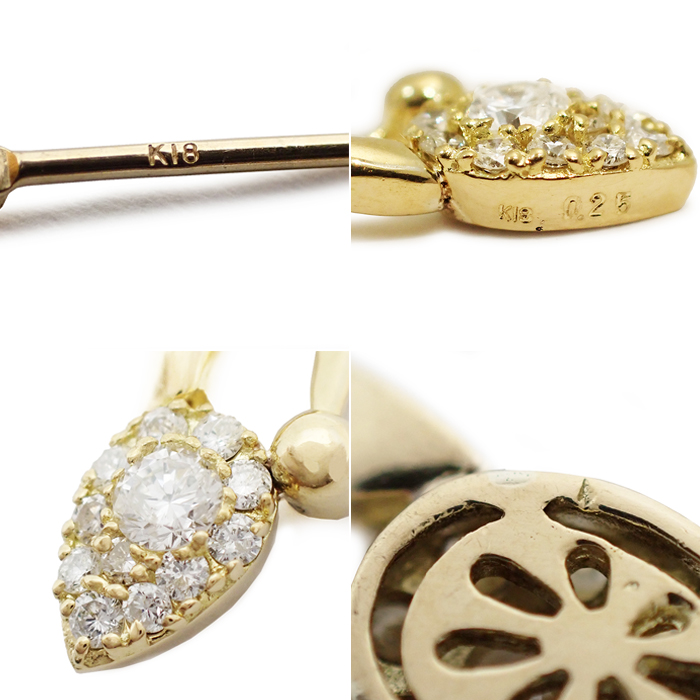 | 詳細 | 0.25ct×2 2.8g ※宝石には10倍のルーペで確認できる天然特有の極わずかな天然特有のインクルージョンがあります。 ※K18には使用に伴うくすみや小傷があります。 ※画像の色の見え方は、お使いのモニターやディスプレイによって異なります。 |