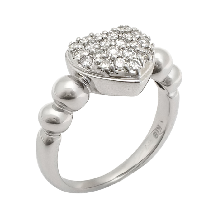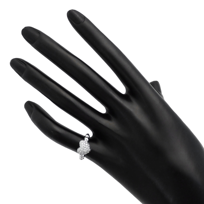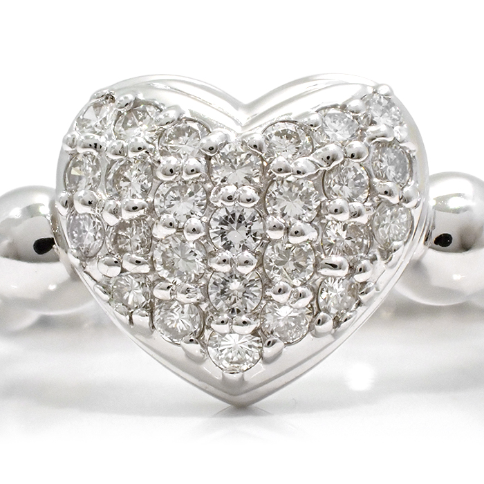 K18WG ダイヤモンド 指輪 7号 パヴェリング ハートモチーフ ホワイトゴールド