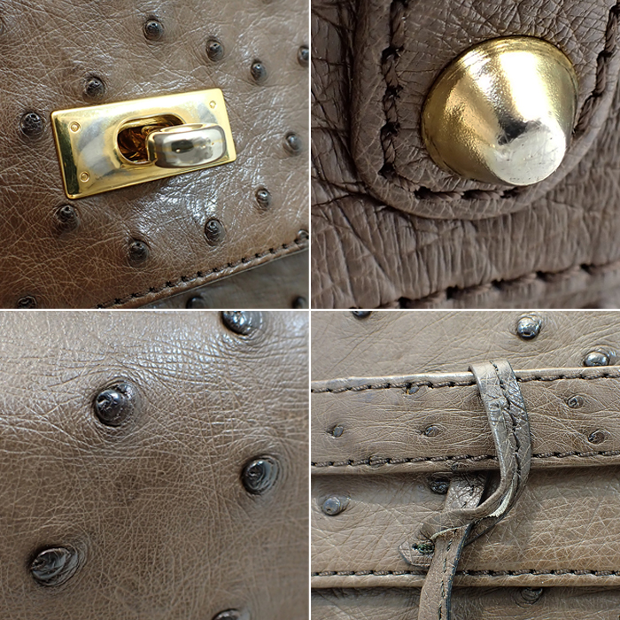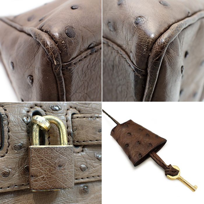 | 詳細 | カラー:ブラウン 金具:ゴールド ターンロック開閉式 持ち手:20.5cm 内側:ファスナーポケット1/オープンポケット2 ※レザー部分にはごく僅かにシミ、角スレなどがございます。 ※内側に擦れ、汚れ、ロゴプレートが取れかけている部分などがございます。 ※金具には傷・剥げ ※画像の色の見え方は、お使いのモニターやディスプレイによって異なります。 |
