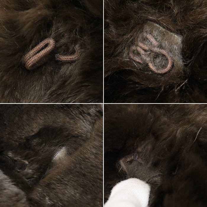 | 状態 | ・毛割れや乱れが見受けられます。 ・左側の紐が切れています。 ・片側の留め具部分にほつれがあります。 ・表地やポケット部分にはシワ、汚れ、色褪せ、スレ、毛羽立ちなどの使用感があります。 |