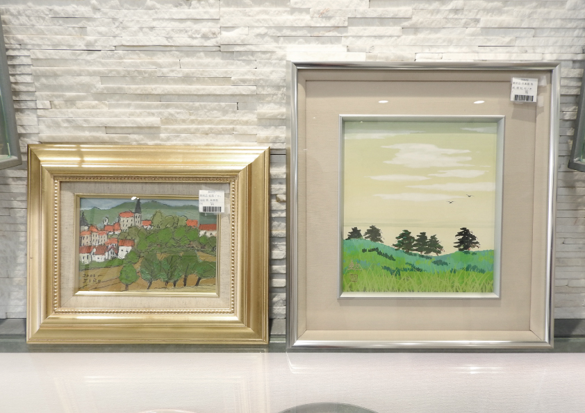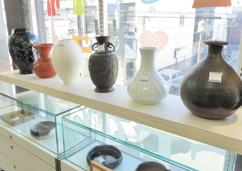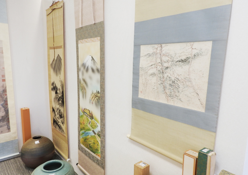 掛け軸や花台。花瓶・壺・皿などの焼き物や、日本画・水彩画・油絵などの絵画。