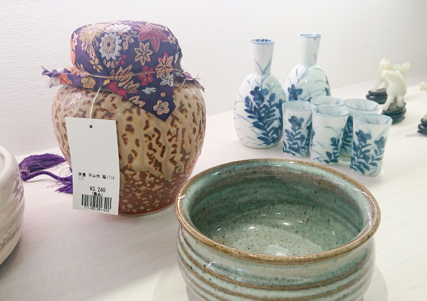 茶道具の茶碗・鉄瓶と幅広い品が並んでいます。