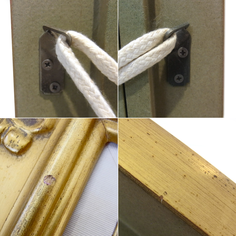 | 状態 | 額や紐には汚れや傷などがあり、金具にくすみや錆があります。 商品の状態に関しては画像にてご確認ください。 ※長期保管品の為、写真撮影部分以外にも細かなキズや汚れがある場合がございます。 |