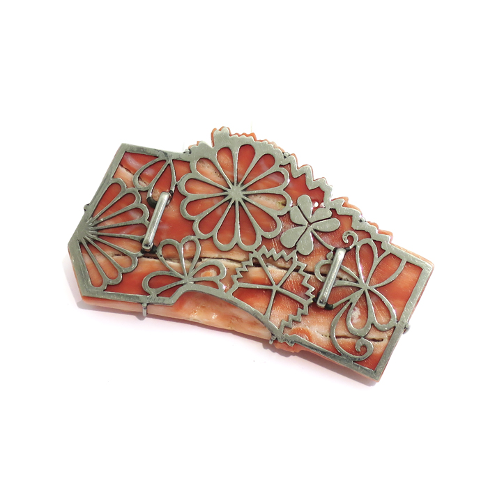 | コメント | サンゴの帯留めが入荷しました!花と歯車のようなモチーフとサンゴの淡いピンク色のコンビが美しい逸品♪上品でありながらインパクトのあるデザインはお着物のアクセントになりそうですね。 |
