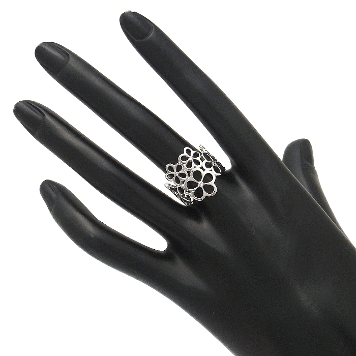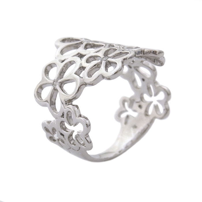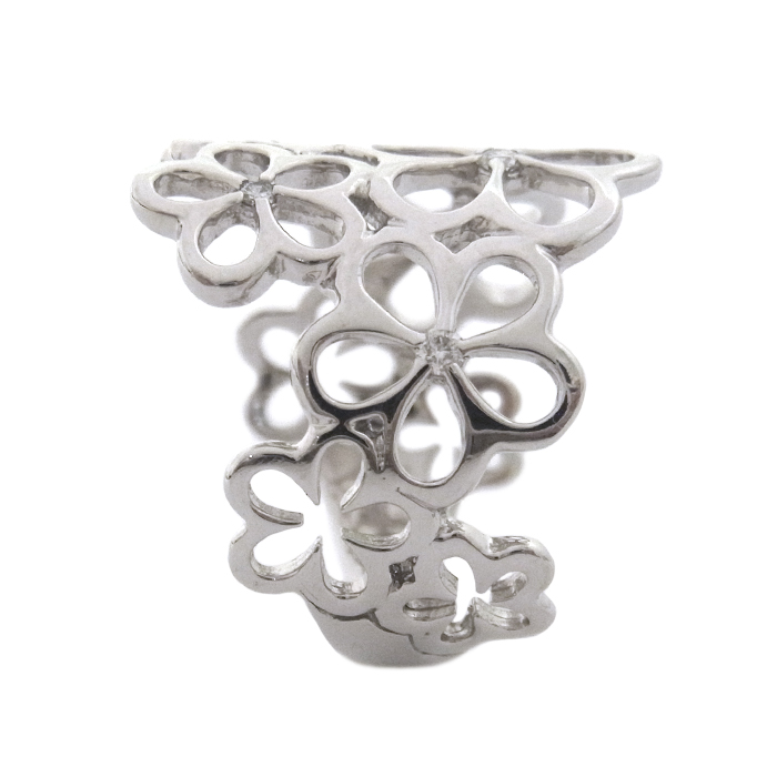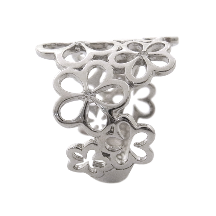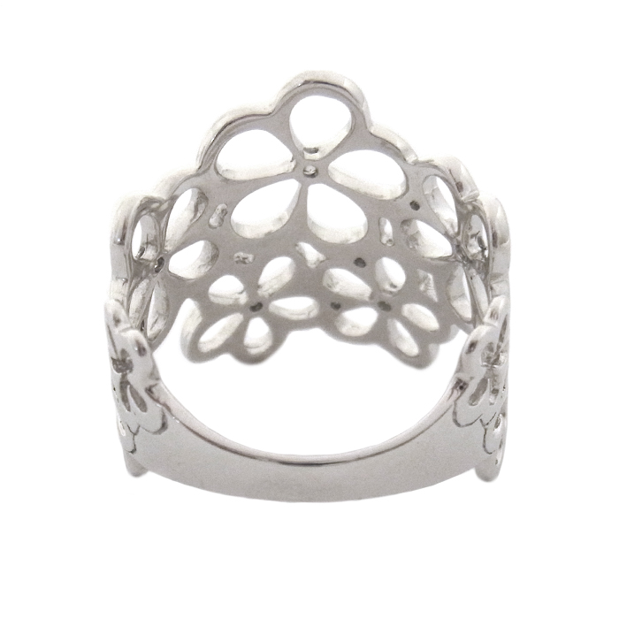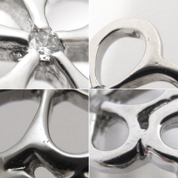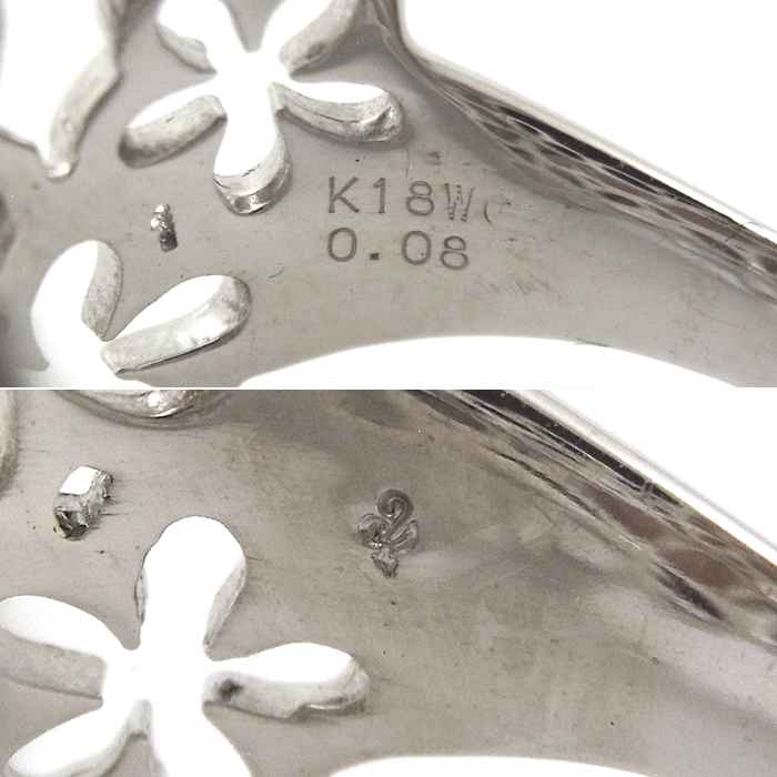 K18WG ダイヤモンド指輪 フラワーモチーフ 花 15.5号 シルバーカラー
