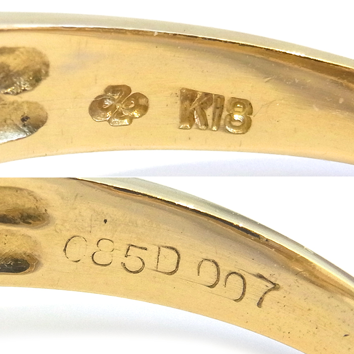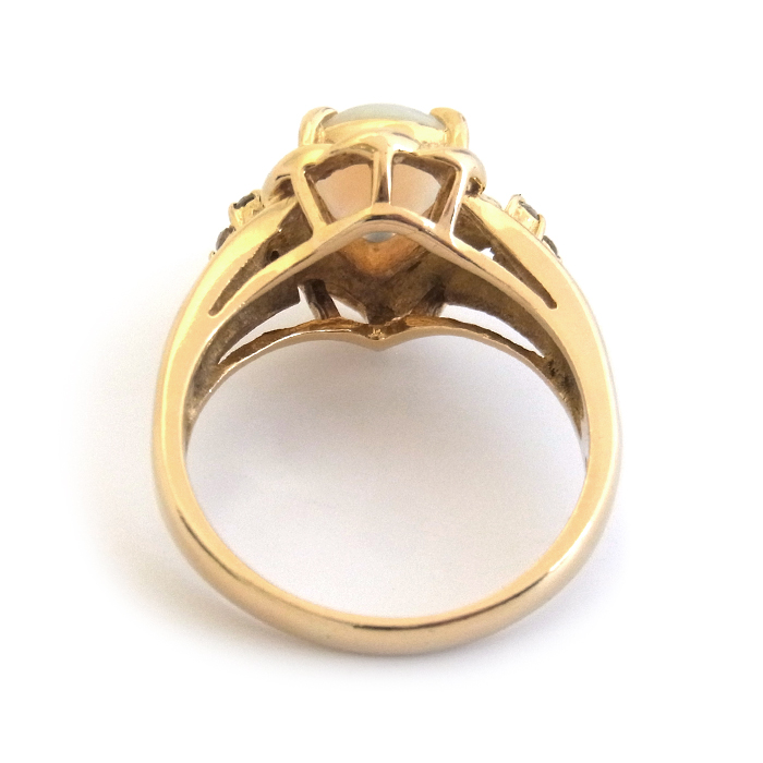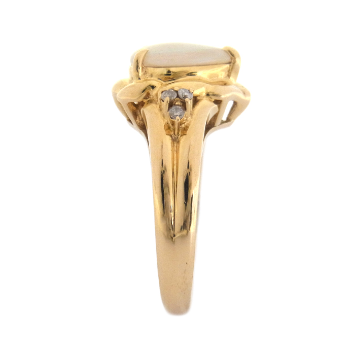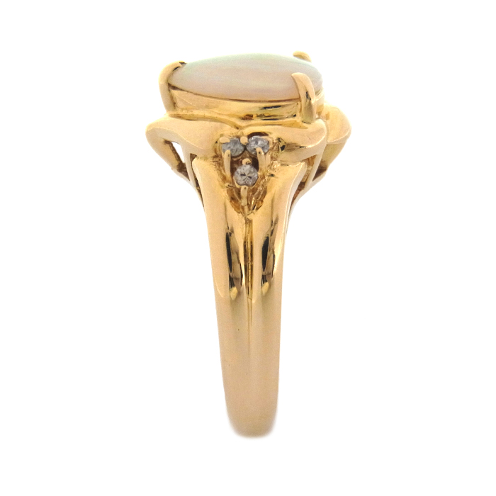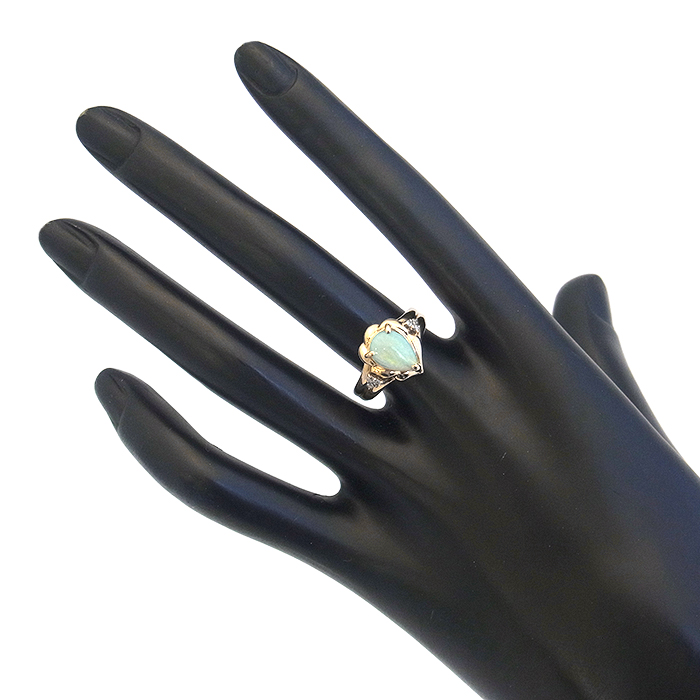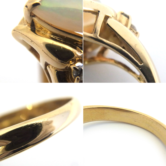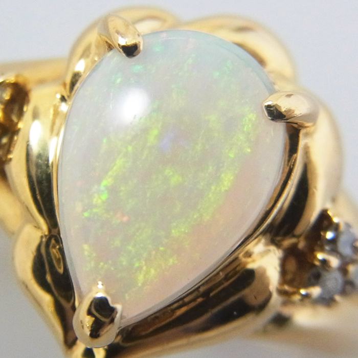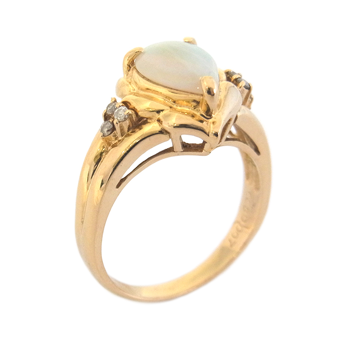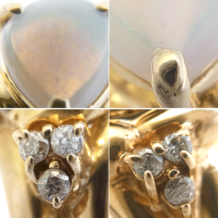 K18 ホワイトオパール 指輪 雫 ドロップモチーフ イエローゴールド