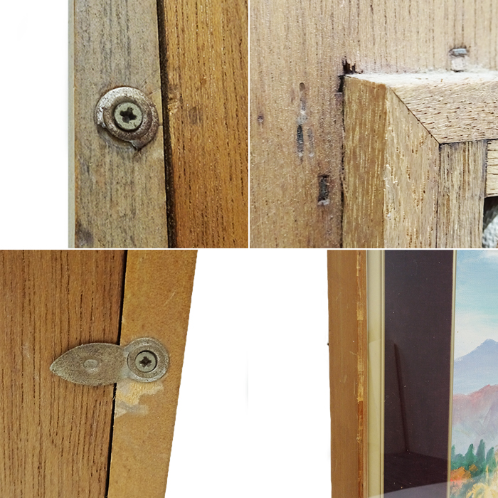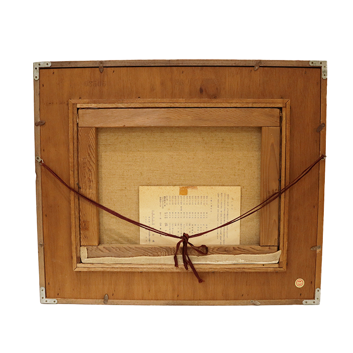| 状態 | ・木枠や紐には汚れや傷などがあり、金具にくすみや錆があります。 ・留め具のトンボが取れている箇所があります。 ・内枠の部分に小さな黒い点の汚れがあります。 ※商品の状態に関しては画像にてご確認ください。 ※表面のアクリルは新しい物に変更しております。 ※長期保管品の為、写真撮影部分以外にも細かなキズや汚れがある場合がございます。 ※画像の色の見え方は、お使いのモニターやディスプレイによって異なります。 |