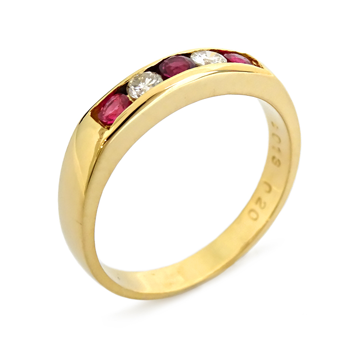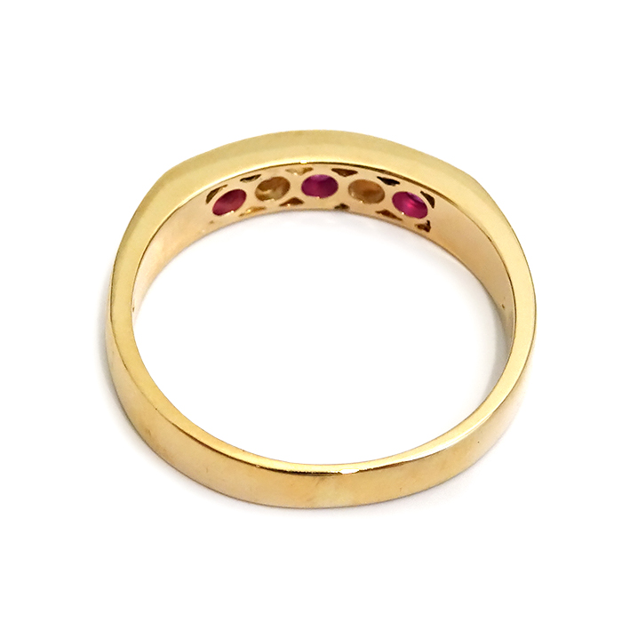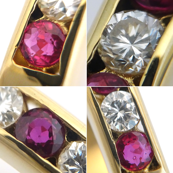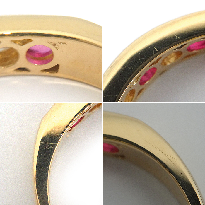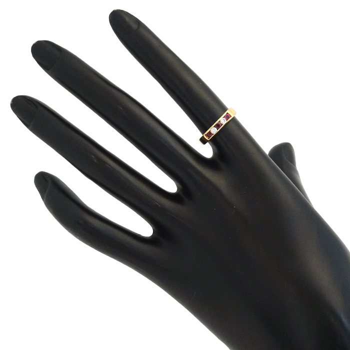 K18 ルビー・ダイヤモンド 指輪 9号 5石 ライン 新品仕上げ済み ゴールドカラー