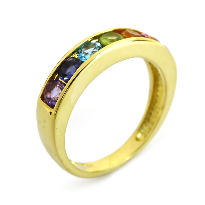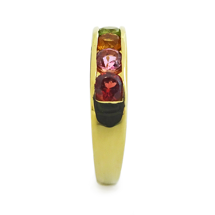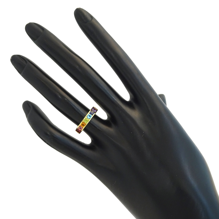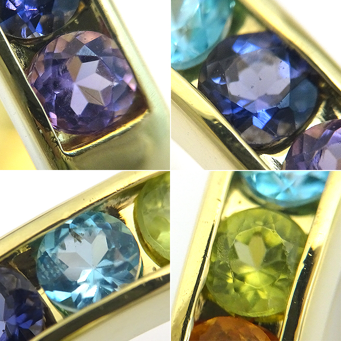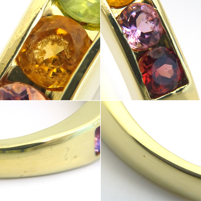K18 マルチストーン 指輪 9号 アミュレット 七色 新品仕上げ済み イエローゴールド