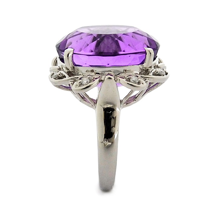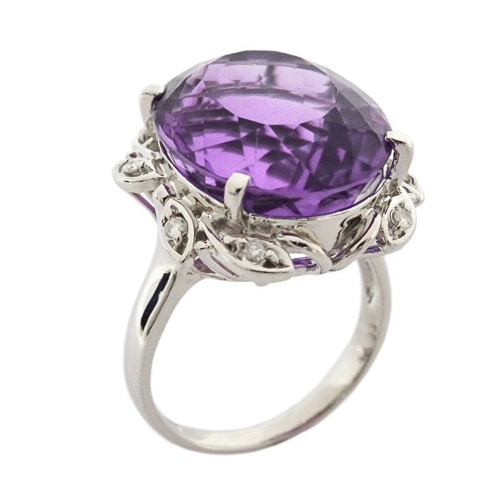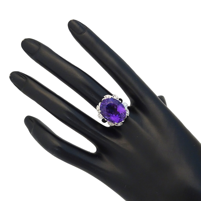 Pt900 アメシスト 指輪 リング 14.5号 大粒 紫水晶 新品仕上げ済み シルバーカラー