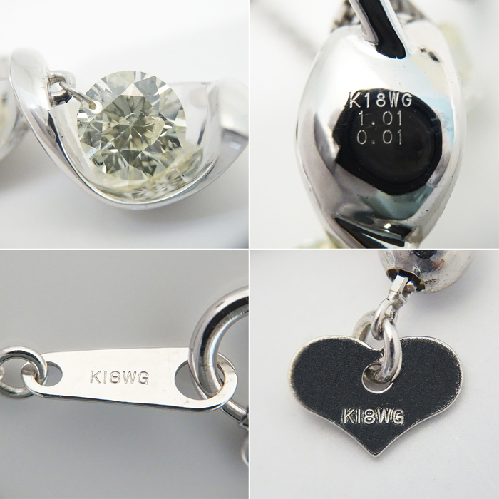 | 詳細 | 1.01ct 0.01ct 5.2g ※新品仕上げ済みの商品ですが、K18WGには小傷・汚れ・変色があります。また、ダイヤモンドには10倍のルーペで確認できる天然特有のインクルージョンがあります。 ※画像の色の見え方は、お使いのモニターやディスプレイによって異なります。 |