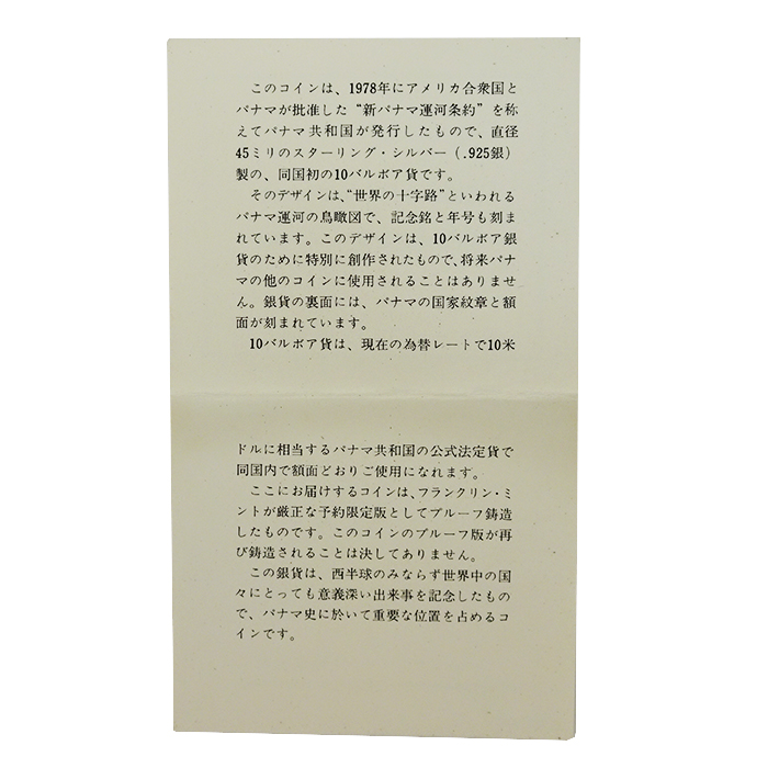 | 商品名 | 新パナマ運河条約記念 10バルボア・プルーフ銀貨 |