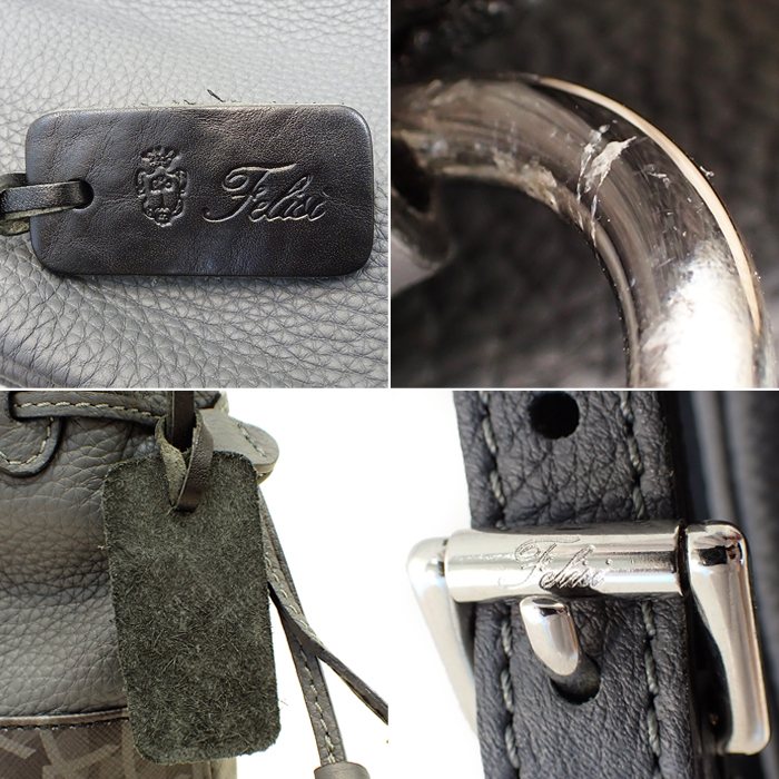 状態綺麗な商品ですが、タグに毛羽立ち、金具部分にごく僅かな小傷・くすみがあります。