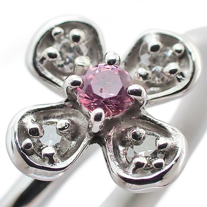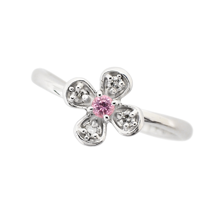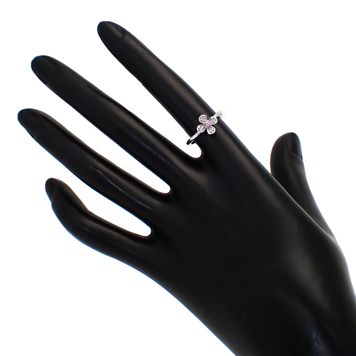 スタージュエリー(STAR JEWELRY) K18WG ピンクサファイア 指輪 9号 フラワーモチーフ 花 新品仕上げ済 ホワイトゴールド