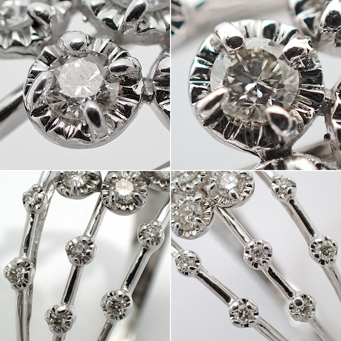 K18WG ダイヤモンド 指輪 22.5号 フラワーモチーフ 花 新品仕上げ済 ホワイトゴールド