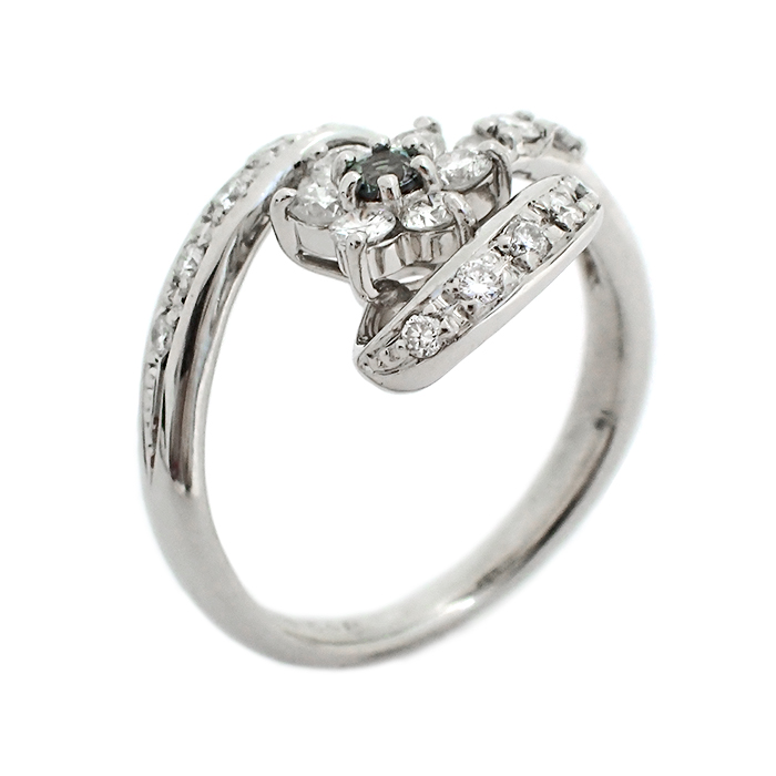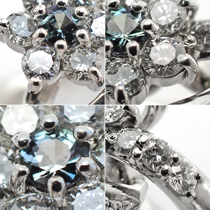 Pt900 アレキサンドライト 指輪 10号 フラワーモチーフ 花 新品仕上げ済 ソーティング付き シルバーカラー