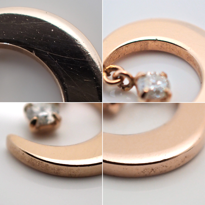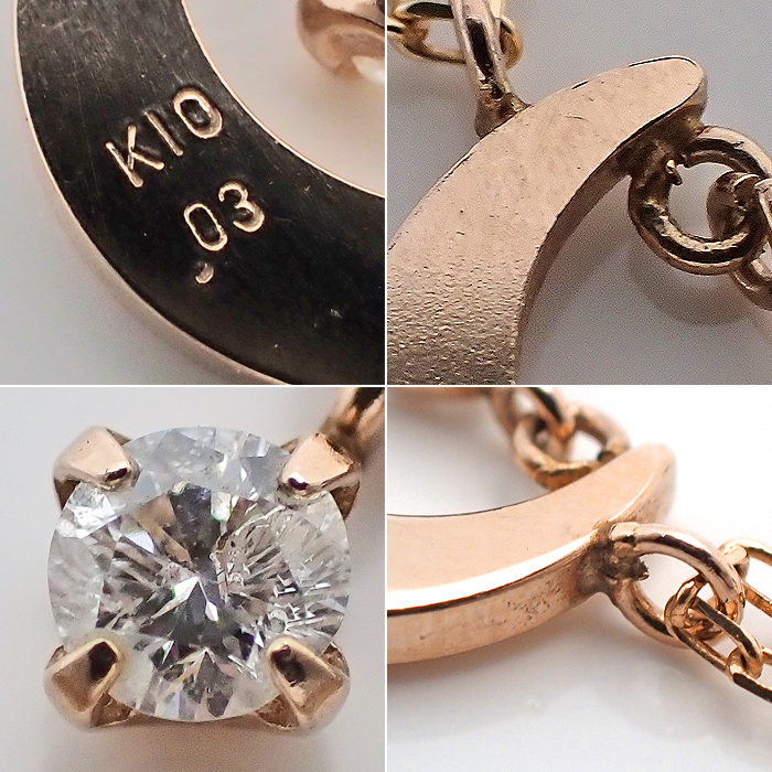| 詳細 | 0.03ct 1.0g トップ取外し可能 ※ダイヤモンドには、10倍のルーペで確認できる天然特有のインクルージョンがあります。 ※K10PGには僅かな小傷やくすみ等があります。 |