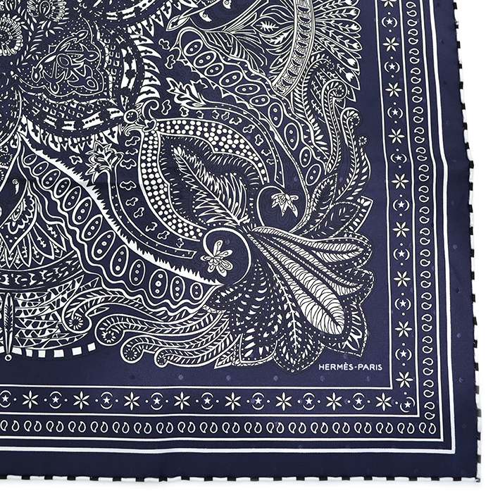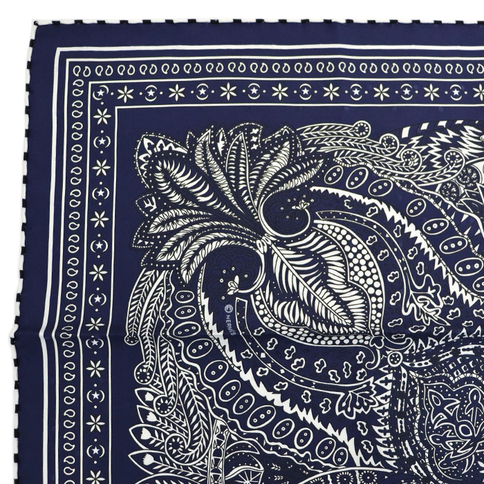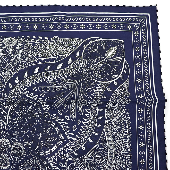 エルメス(HERMES) カレ55 Le Jardin de la Maharani マハラニの庭 スカーフ 箱付き マリーン ネイビー