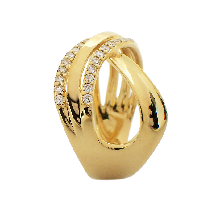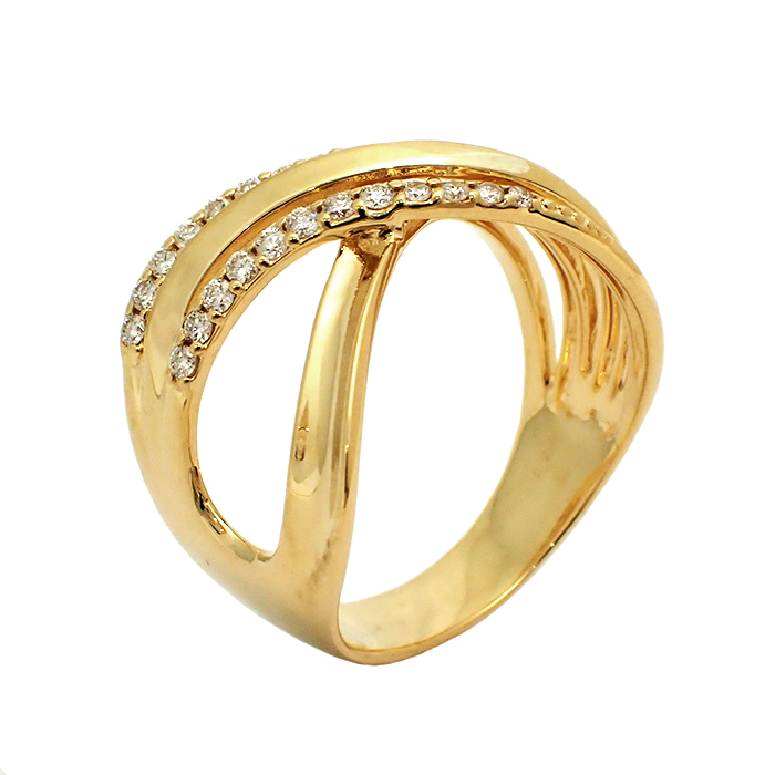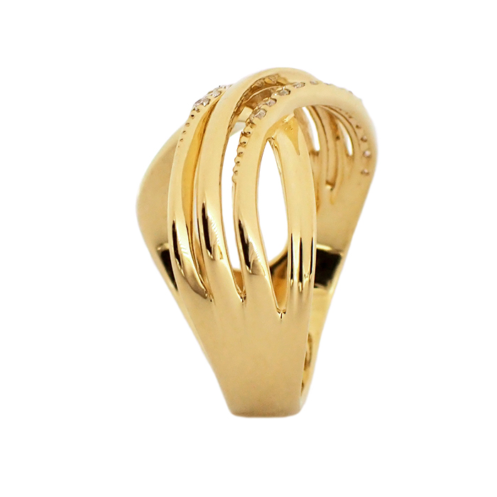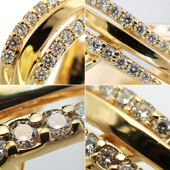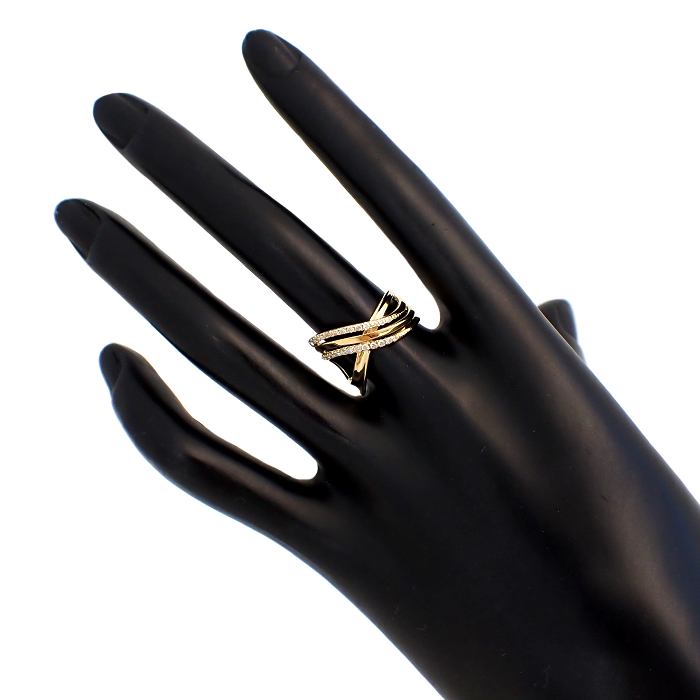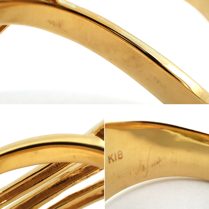 K18 ダイヤモンド 指輪 12号 4連 ライン クロスモチーフ ゴールドカラー