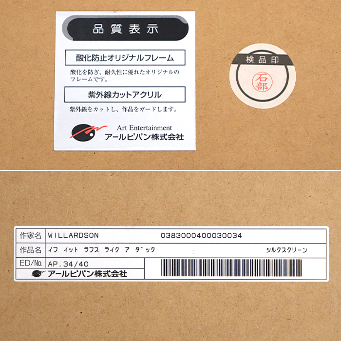 デビッド ウィラードソン(David Willardson) ディズニー ポップアート ドナルドダック「イフ イット ラフス ライク ア ダック」シルクスクリーン 絵画 額入り