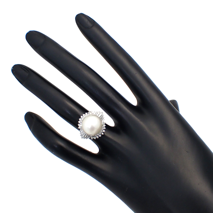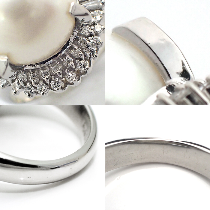 Pt900 パール ダイヤモンド 指輪 9.5号 真珠 シルバーカラー