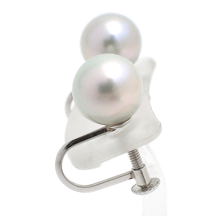 Pt900 パール イヤリング 一粒 真珠 シルバーカラー