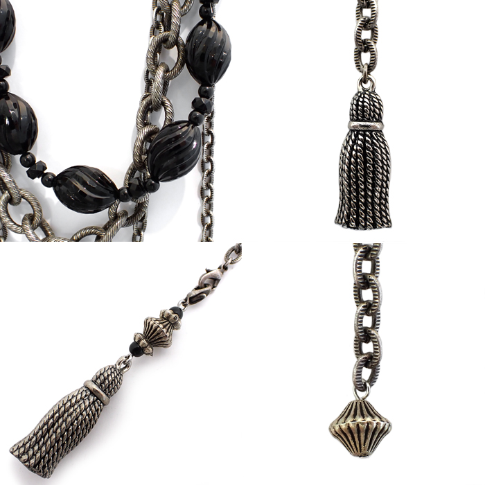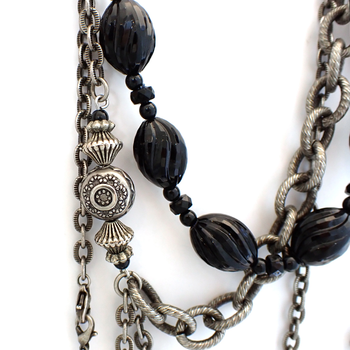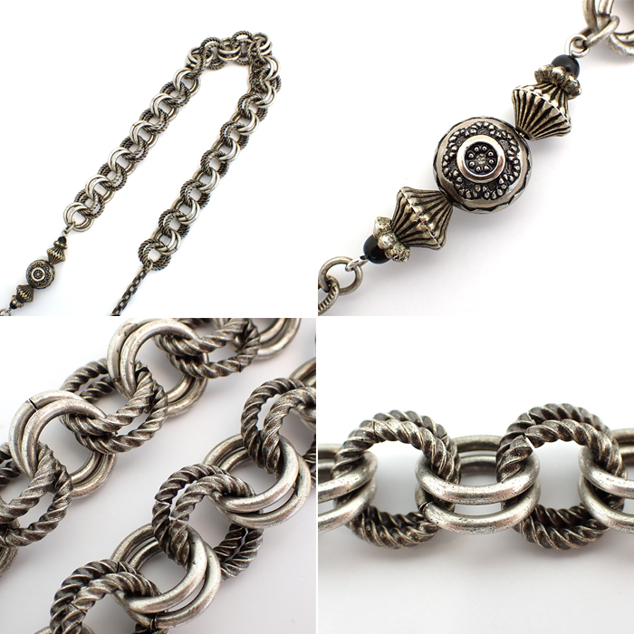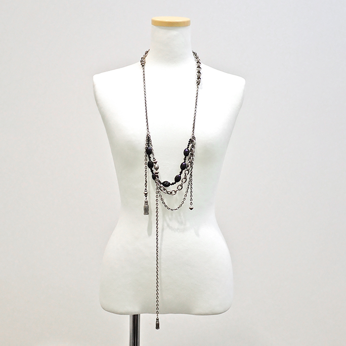 メタル ロングネックレス チェーン アシンメトリー シルバーカラー