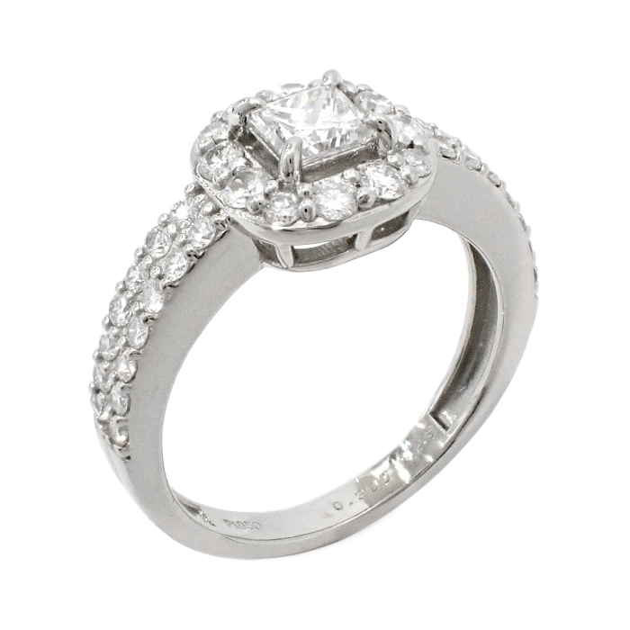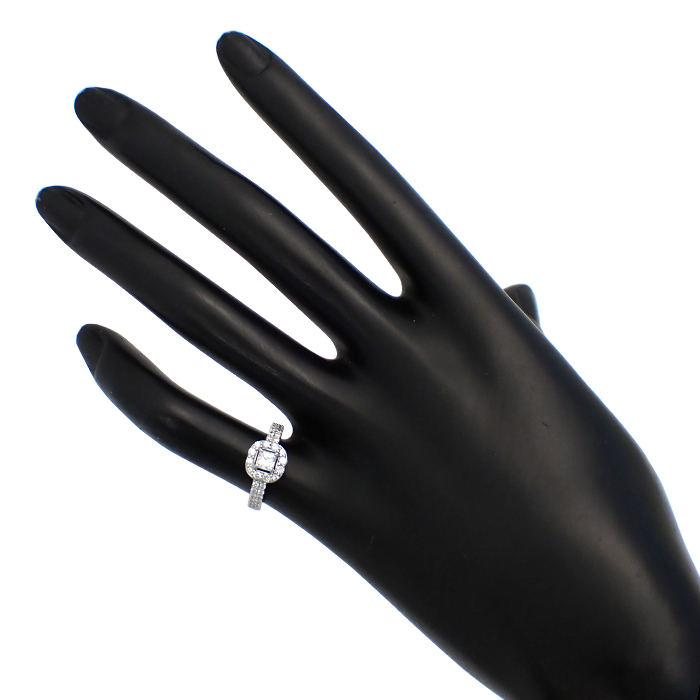 Pt950 ダイヤモンド 指輪 7号 プリンセスカット リング 鑑定書付き シルバーカラー