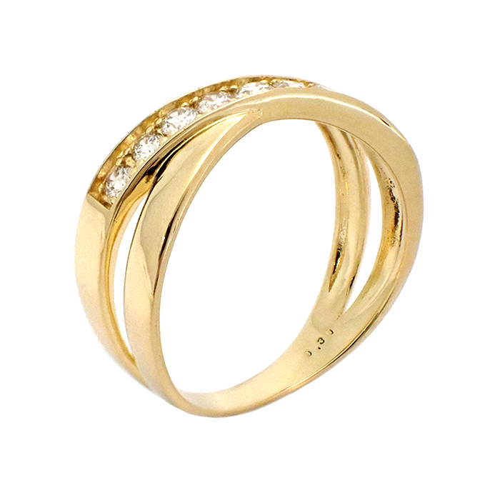 K18 ダイヤモンド 指輪 12号 クロスライン ゴールドカラー