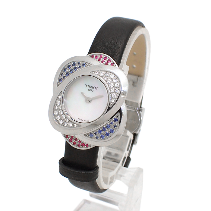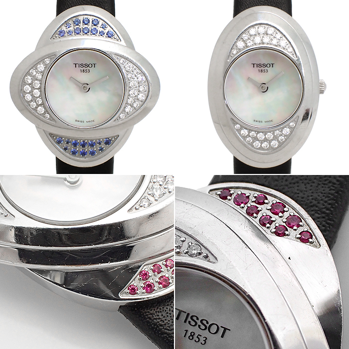 | 詳細 | QZ(電池式) ダイヤモンド・サファイア・ルビー入りベゼル ホワイトシェル文字盤 レディース 社外ベルト ※画像の色の見え方は、お使いのモニターやディスプレイによって異なります。 |
