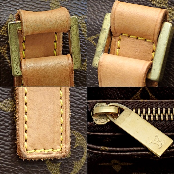 | 状態 | 全体的に型崩れがあり、キャンバスにはスレ・汚れ、ヌメ革には汚れ・シミ・焼け・傷・シワ等があります。 また、金具にはくすみ・小傷・メッキ剥がれ等があります。 ※店頭展示品のため、小傷等付く場合がございます。 |
